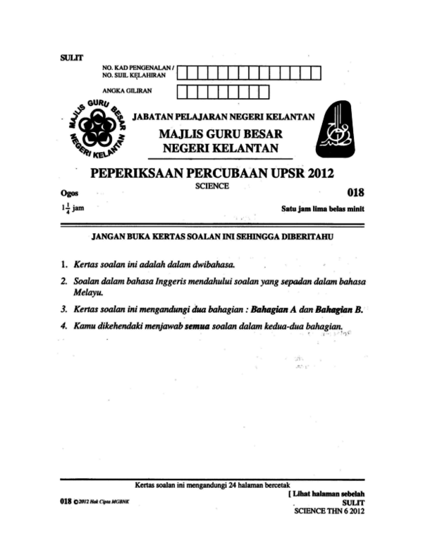 Pdf Soalan Percubaan Upsr 2012 Negeri Kelantan Subjek Sains Bahagian A B Sistem Guru Online Academia Edu